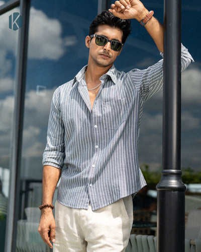White - Gray Cotton Full Sleeve Shirt – Kairo