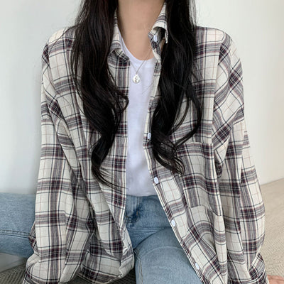 Versatile Plaid Shirt for Women – Loose Fit with Notched Collar for a Casual Style