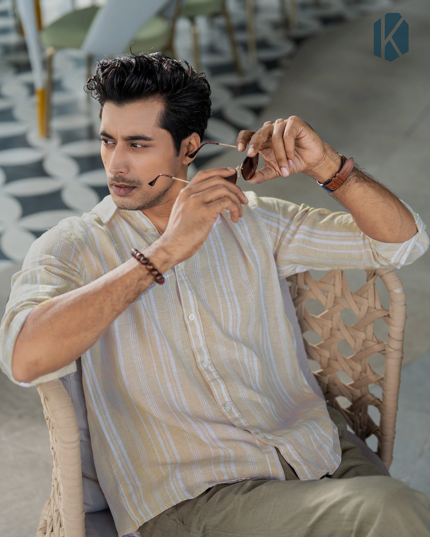 Beige & White Cotton Stripe Full Sleeve Shirt – Kairo
