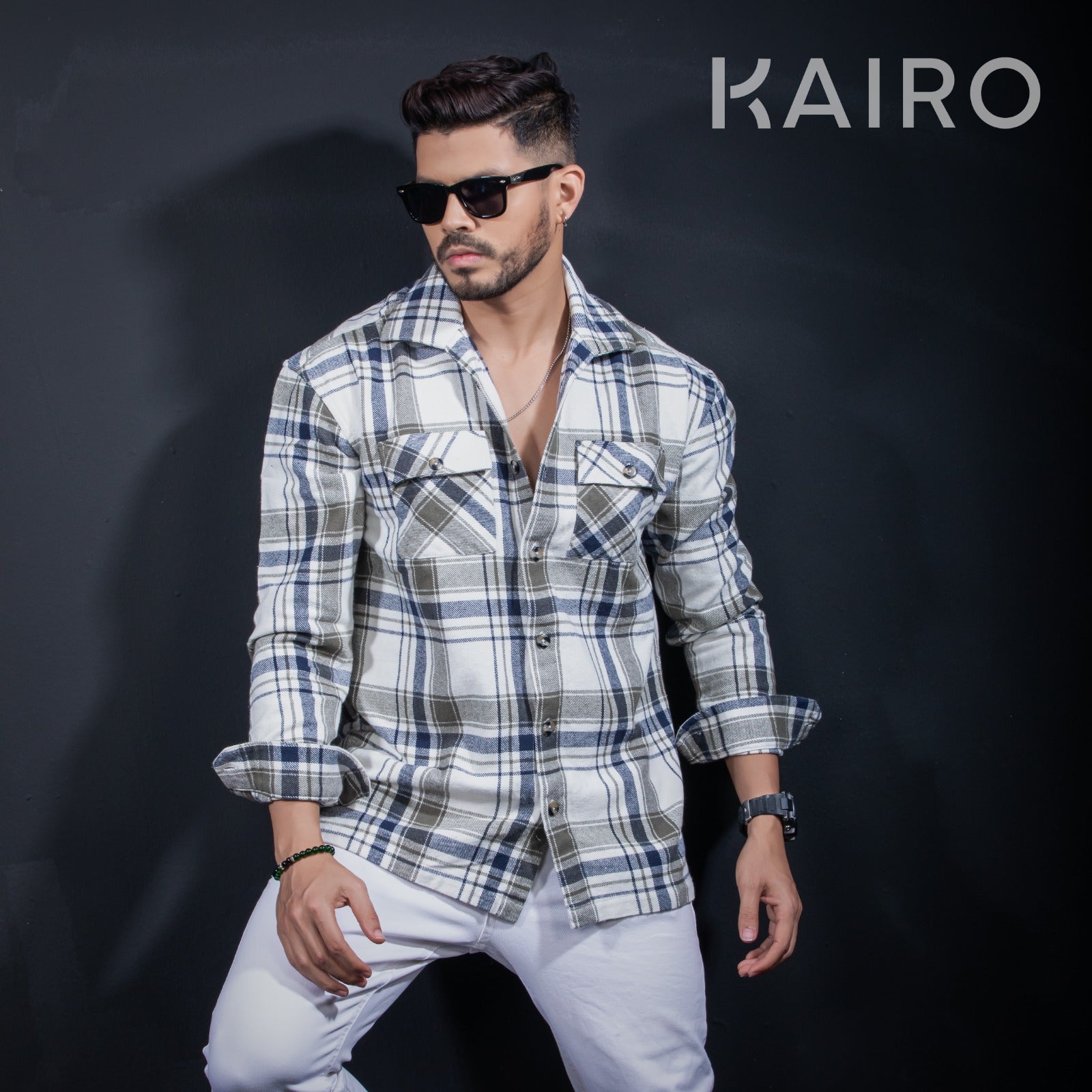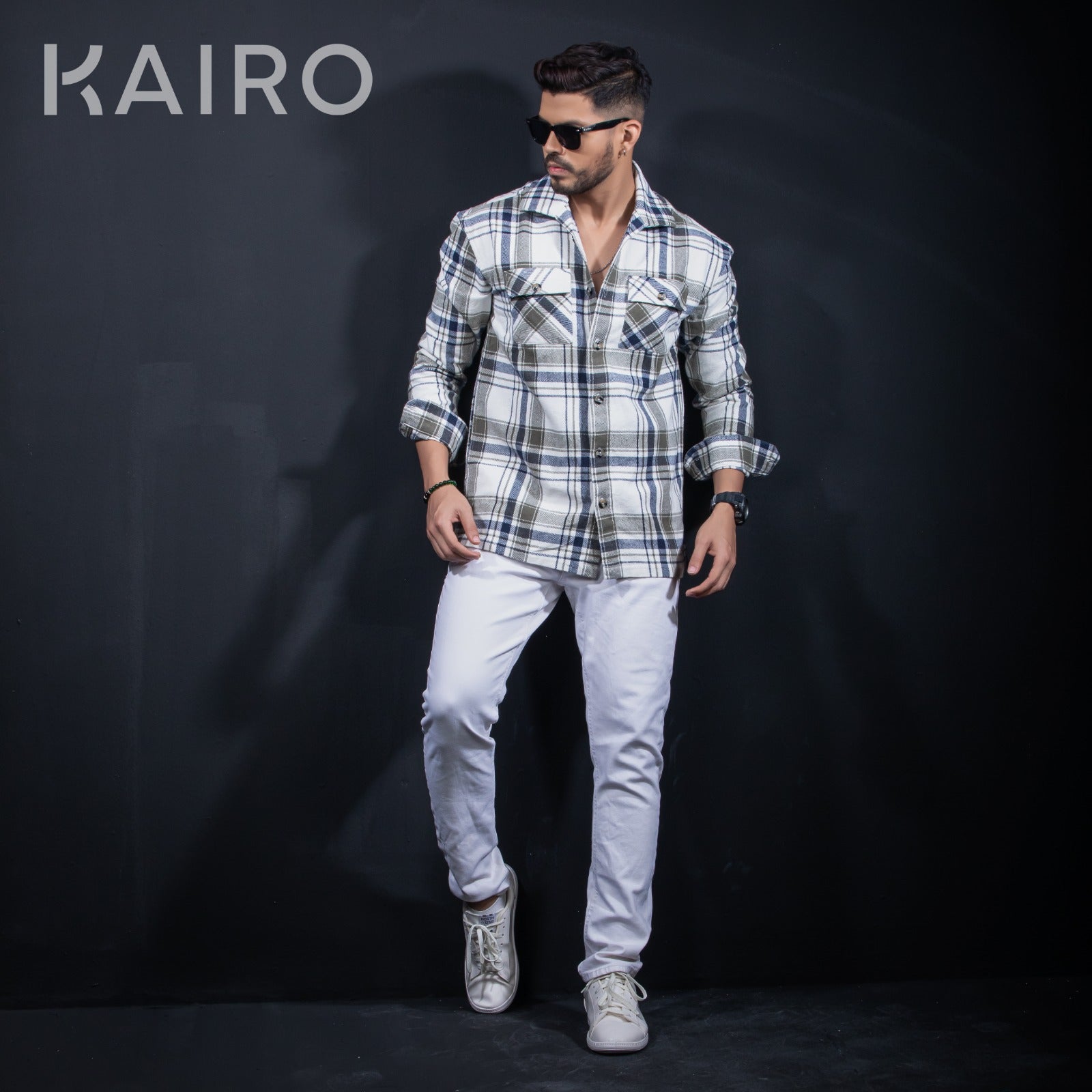 Double pocket Blue check cotton shacket jacket