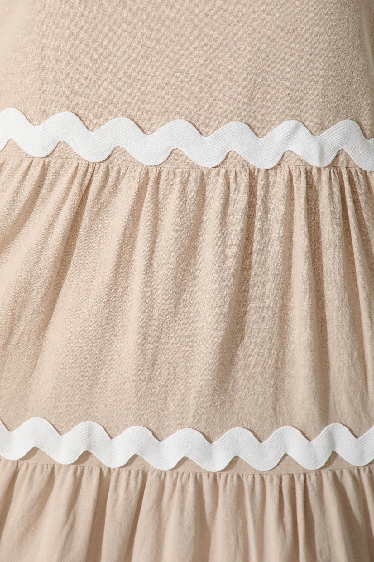 Hara Maxi Sundress In Beige With White Ric Rac Trim Cotton