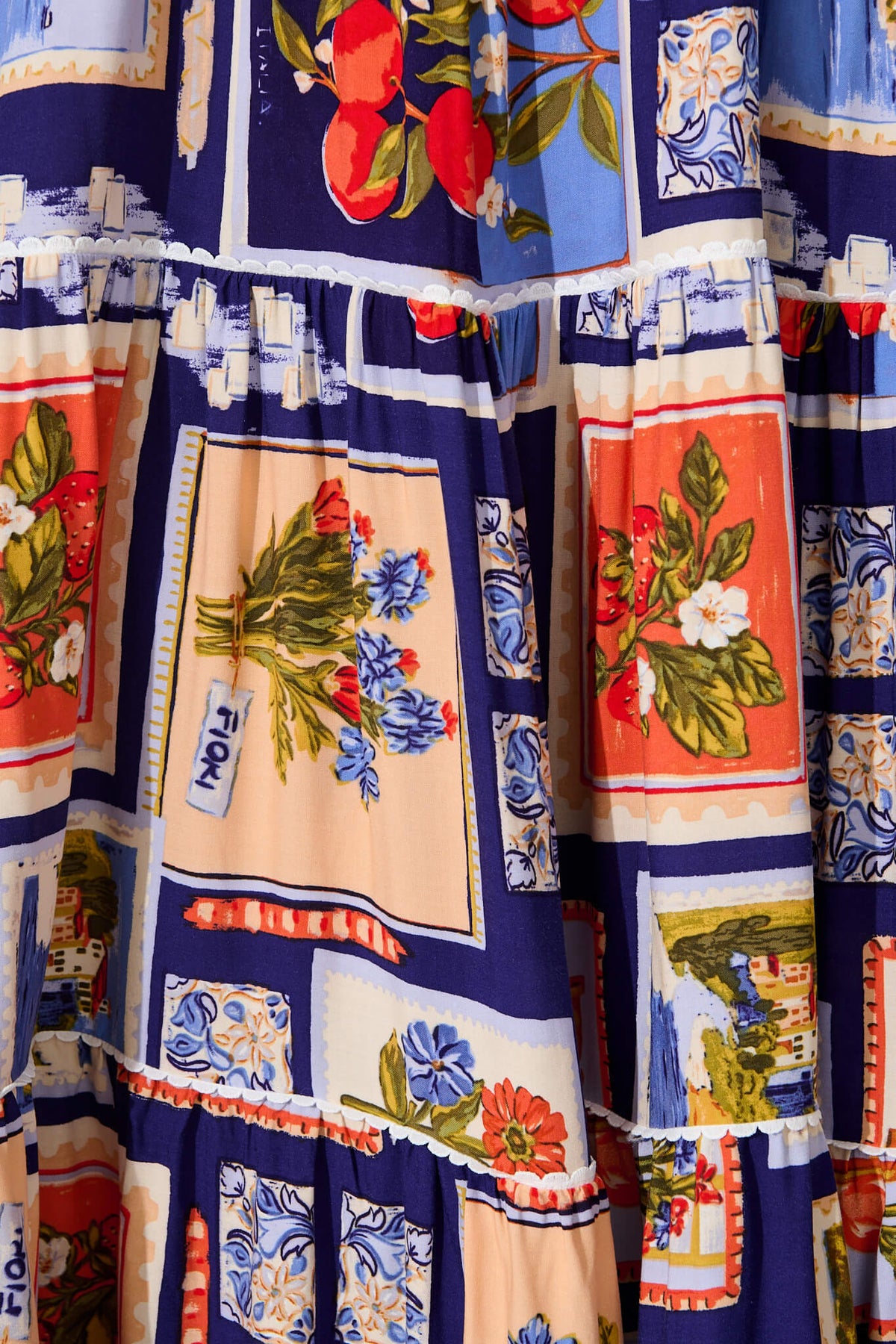 Jenelle Maxi Sundress in Blue Multi Postcard Print