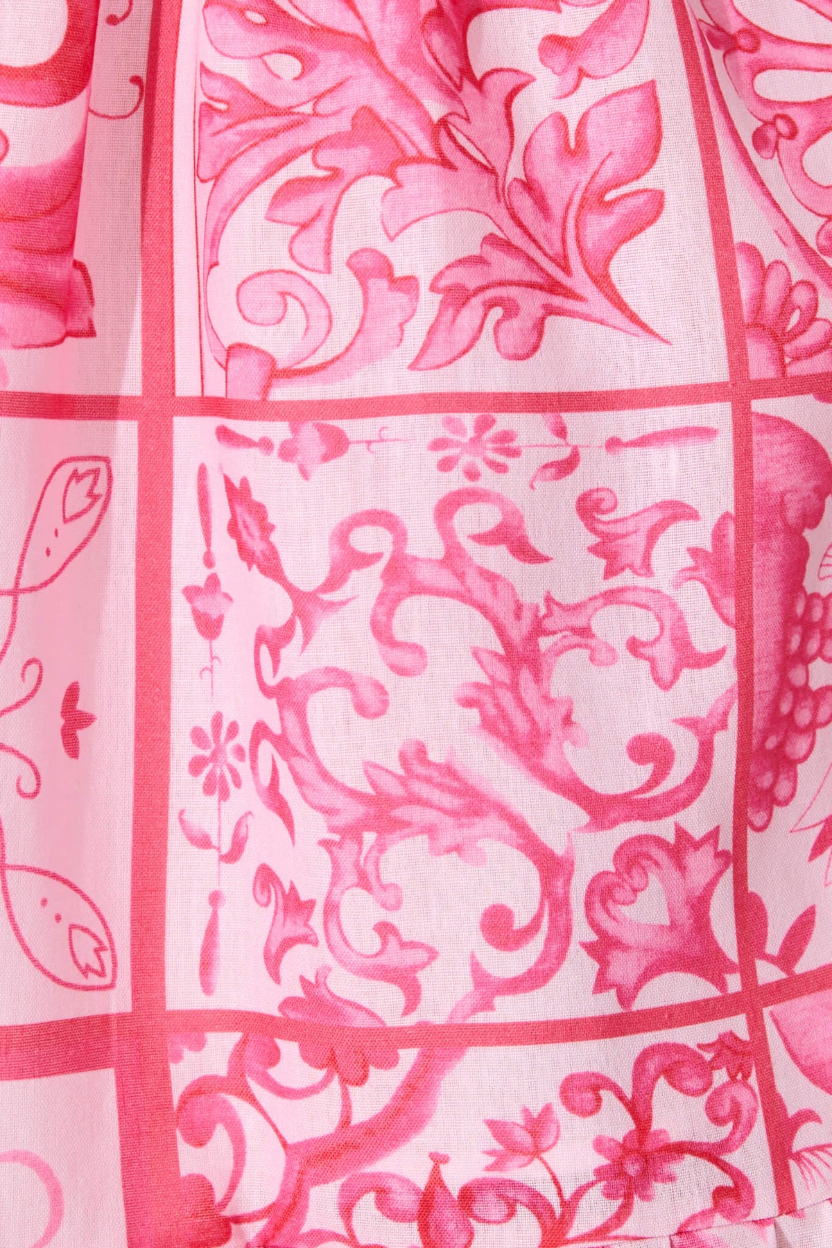 Katharena Maxi Shirt Dress in Pink and Red Tile Print