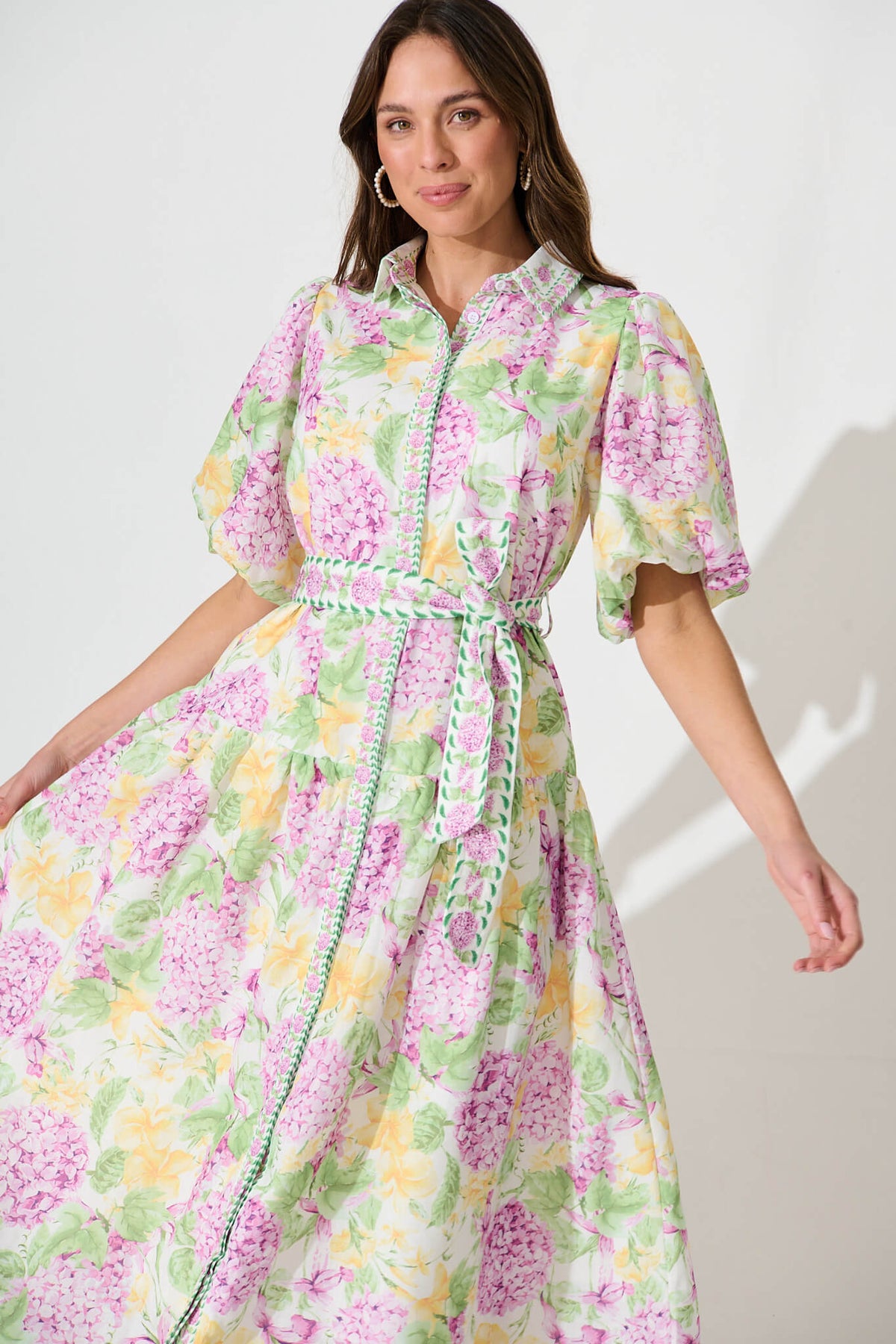 Lovelife Maxi Shirt Dress in Lilac Multi Floral Linen Blend