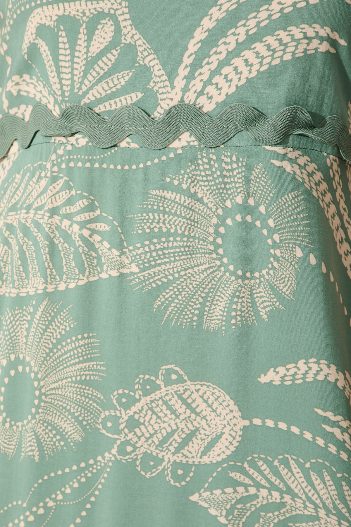 Treviso Maxi Sundress In Green And Cream With Ric Rac Trim