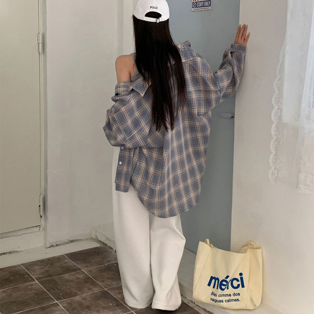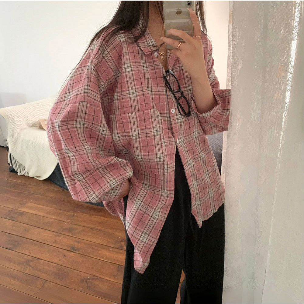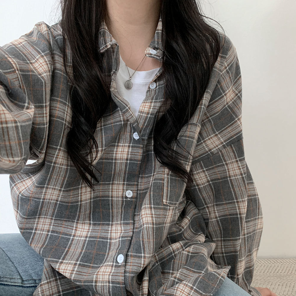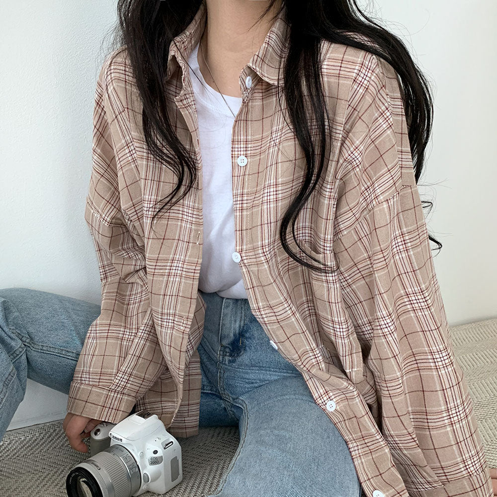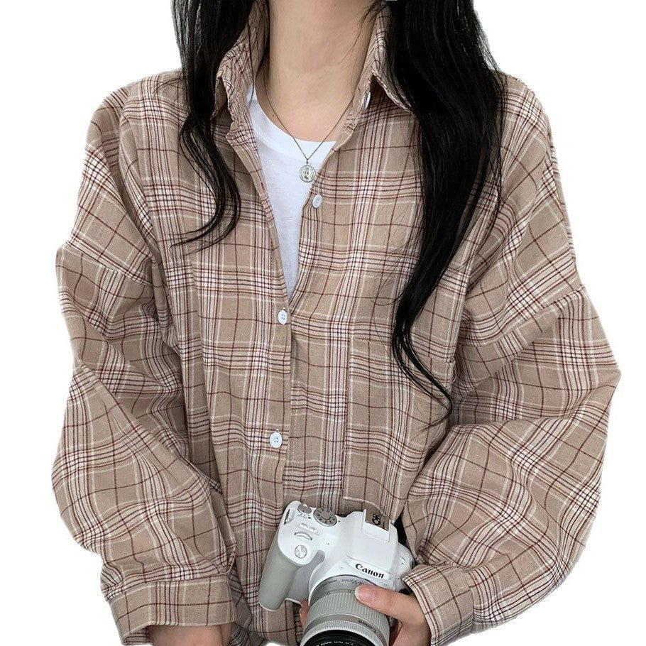 Versatile Plaid Shirt for Women – Loose Fit with Notched Collar for a Casual Style